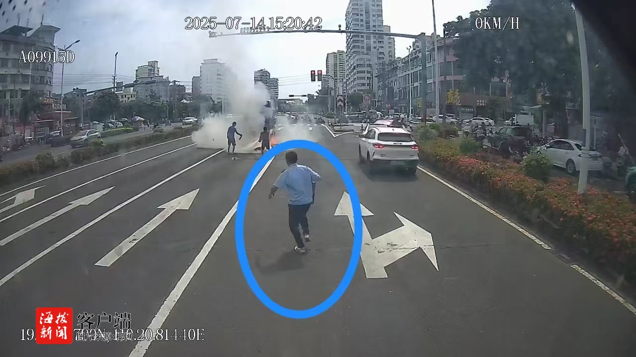 足彩网竞彩官网:路遇卡车突发自燃 海口公交侠2分钟熄灭